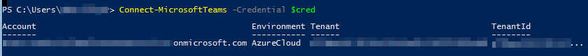 Connect-MicrosoftTeams -Credential $cred